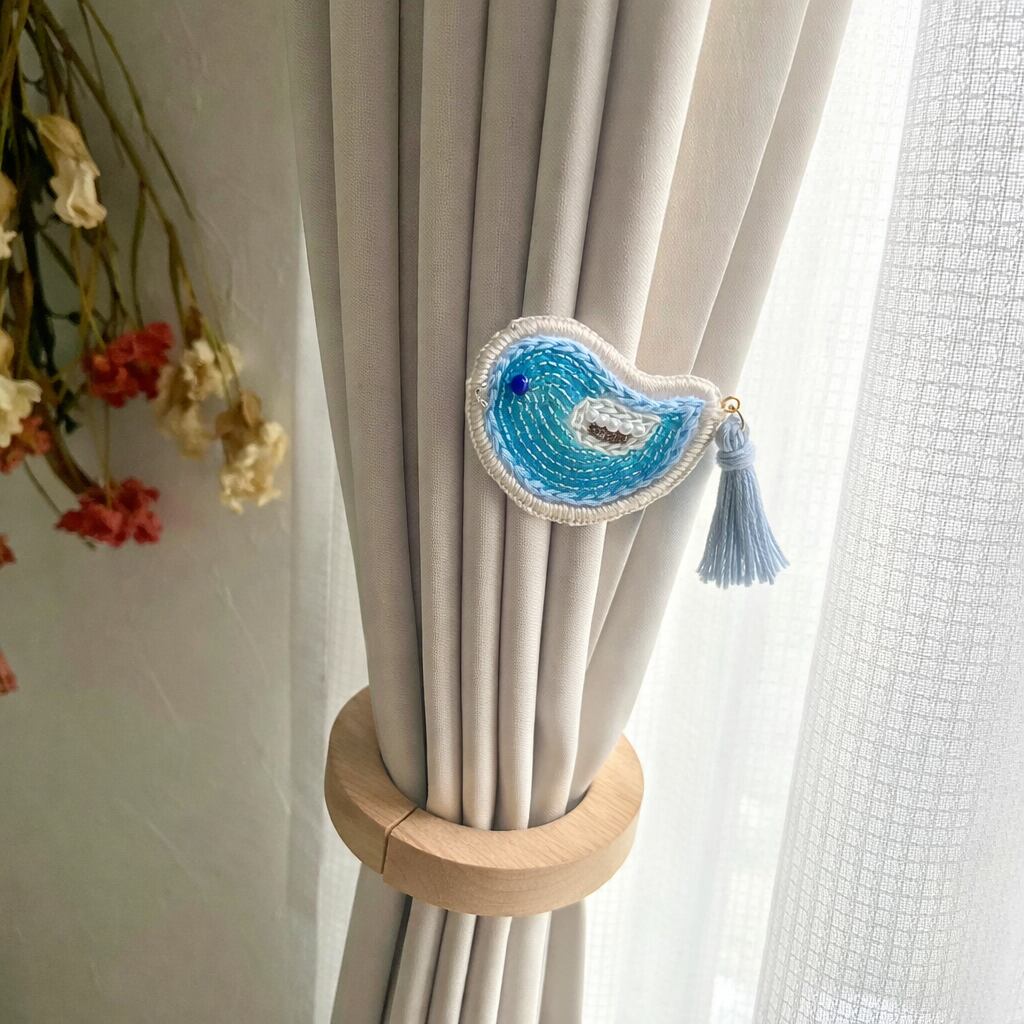きれいなブルーで小鳥をモチーフに、