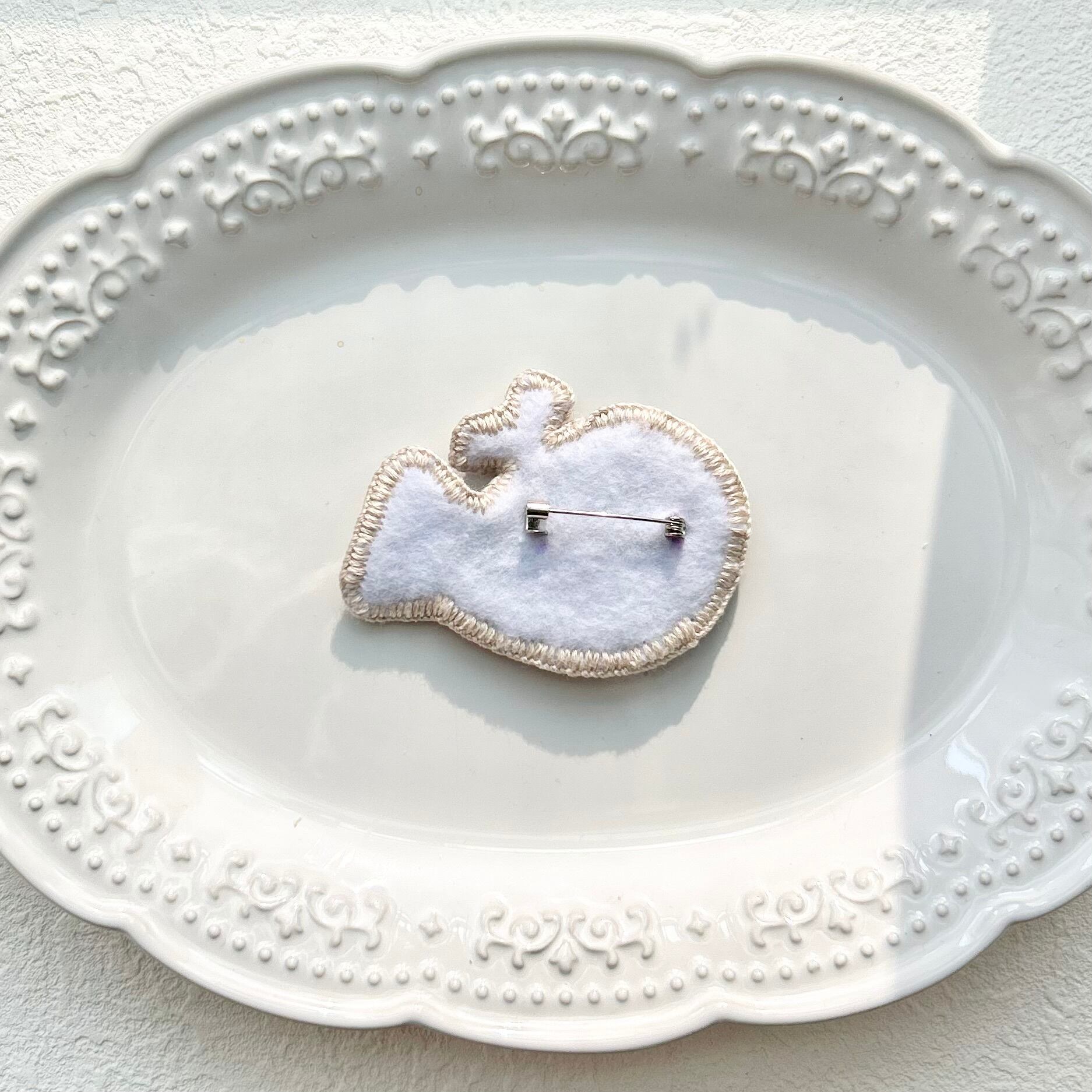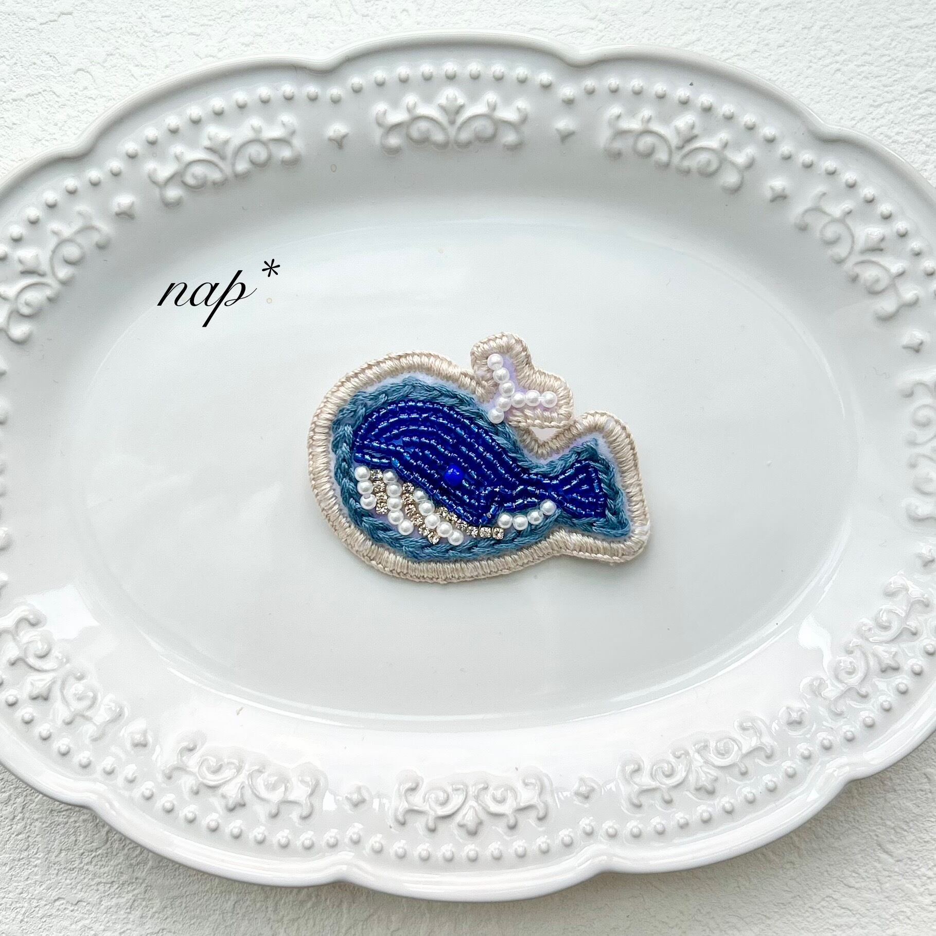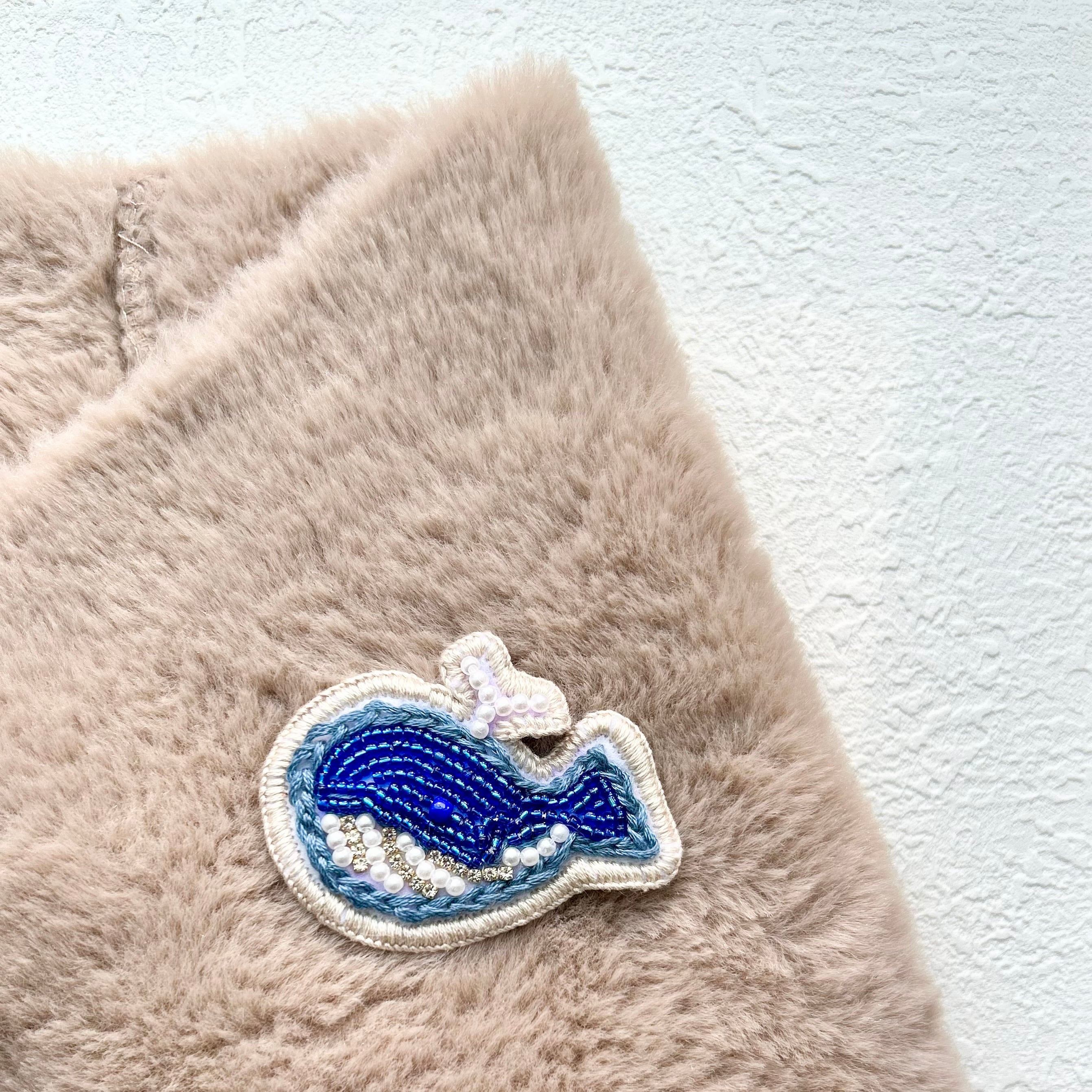 海の中をゆっくり泳ぐくじらをイメージして制作した刺繍ブローチです。