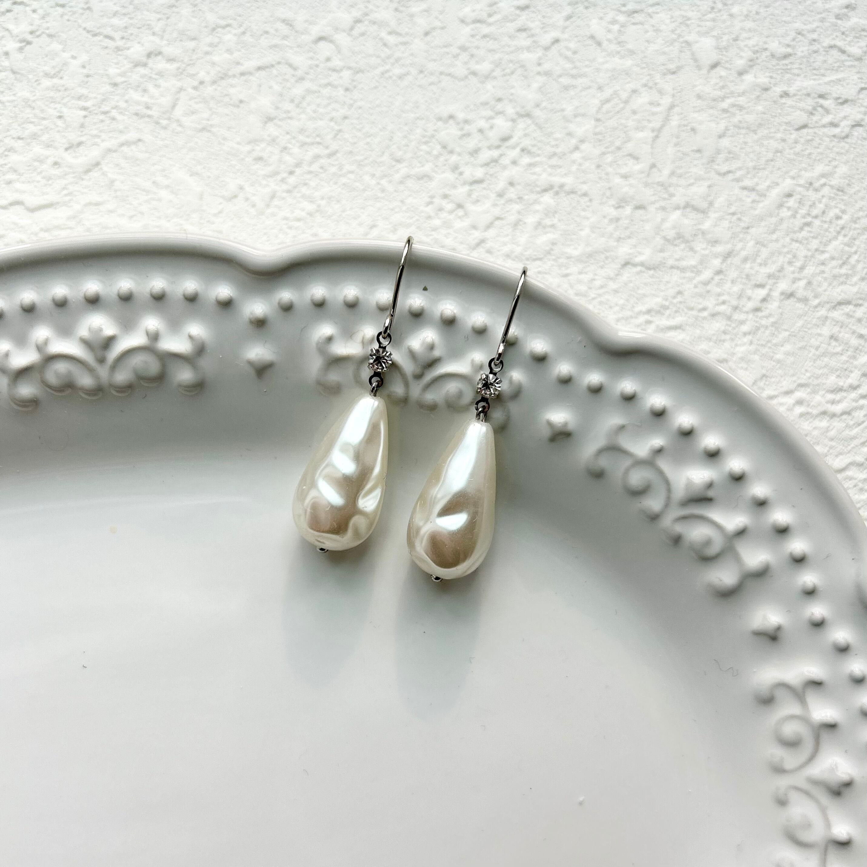 ゆらめく雫のバロックパールピアス|ハンドメイド
